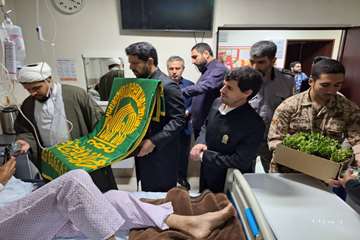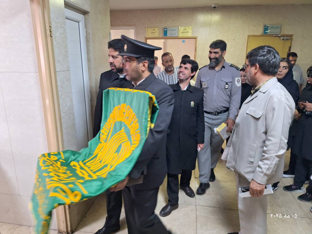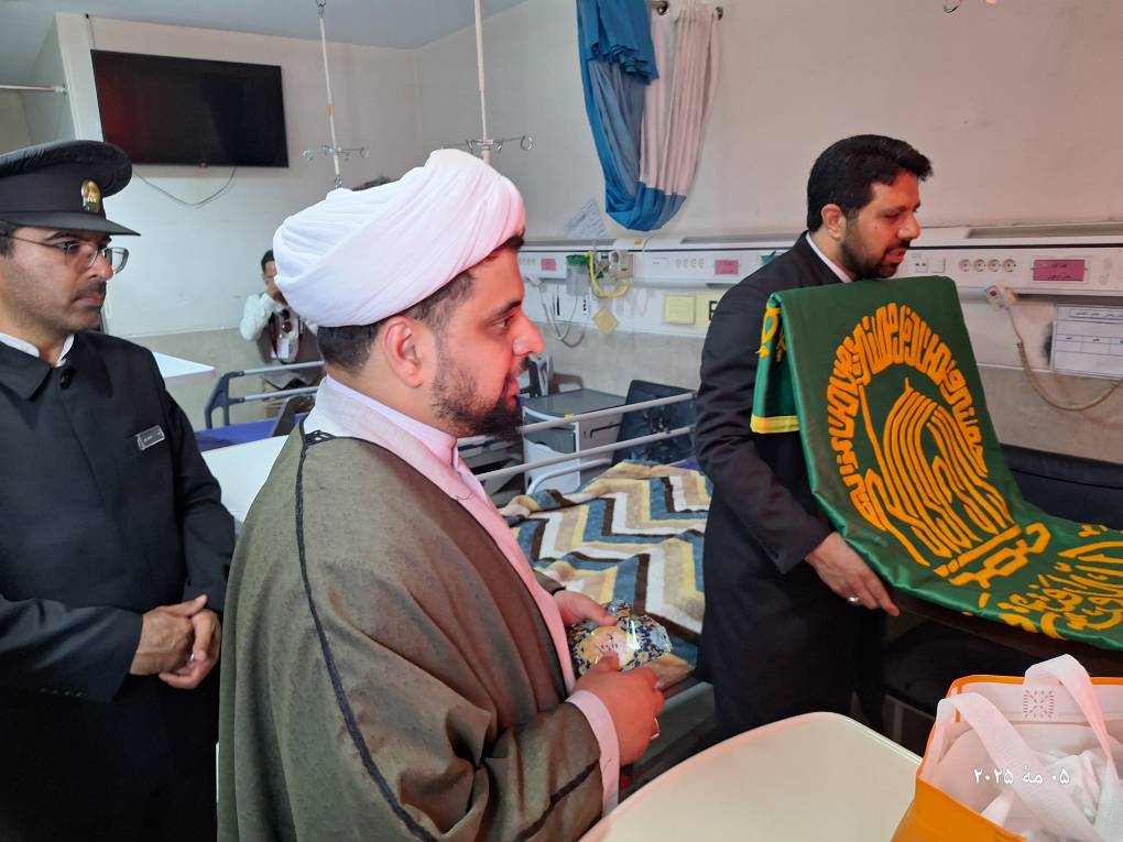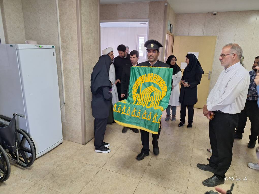 در این مراسم خدام حرم مطهر رضوی با پرچم متبرک آستان قدس رضوی، ضمن دیدار با بیماران و کادر درمان، برای شفای عاجل بیماران دعا کردند و فضایی آکنده از عشق و ارادت به امام رضا (ع) در بیمارستان ایجاد شد.