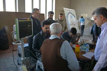برپایی میز خدمت بیمارستان امام حسین(ع) در مصلای محمدشهر