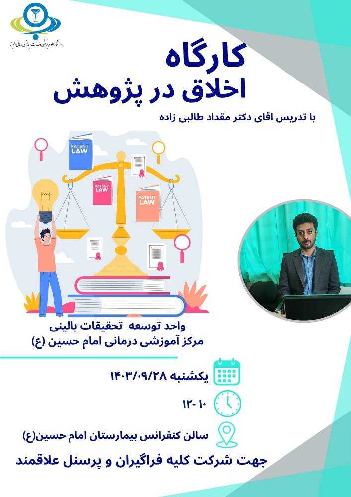| 7 | 1403/09/28 | اخلاق در پژوهش | آقای دکتر طالبی زاده |